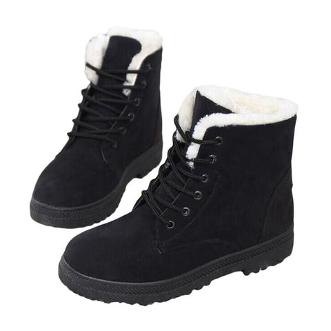 2017 New Fashion Women's Winter Short Boots Sheepskin Thickened Fur Shoes Keep Botas Mujer Lace Up Flock Warm Ankle Snow Boots
