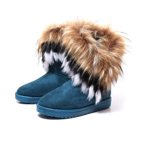 KUYUPP Women Flat Ankle Snow Boots Fur Boots Winter Warm Snow Shoes Round-toe Female Flock Leather Women Shoes DX910